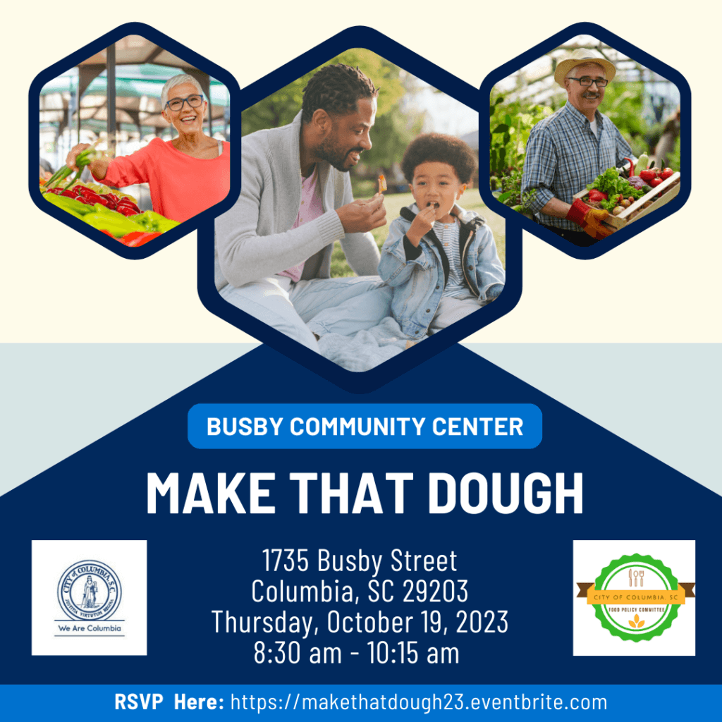 The City of Columbia Food Policy Committee and the City of Columbia’s Office of Business Opportunities will be hosting the Make That Dough workshop on Thursday, October 19th beginning at 8:30AM.