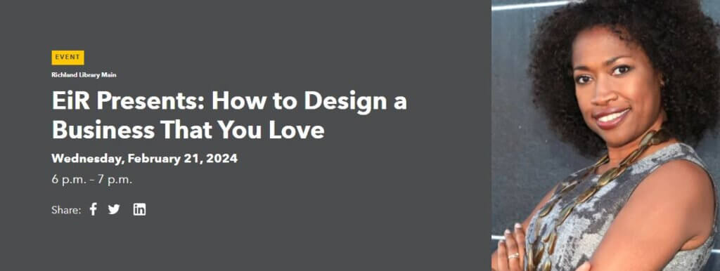 Richland Library’s Entrepreneur-in-Residence (EiR) Michele Dugar will present How to Design a Business That You Love on Wednesday, February 21st at 6:00PM!