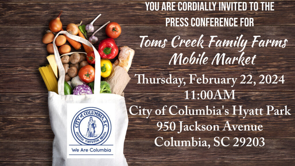 The City of Columbia is pleased to announce the launch of the Toms Creek Family Farms Mobile Food Market!