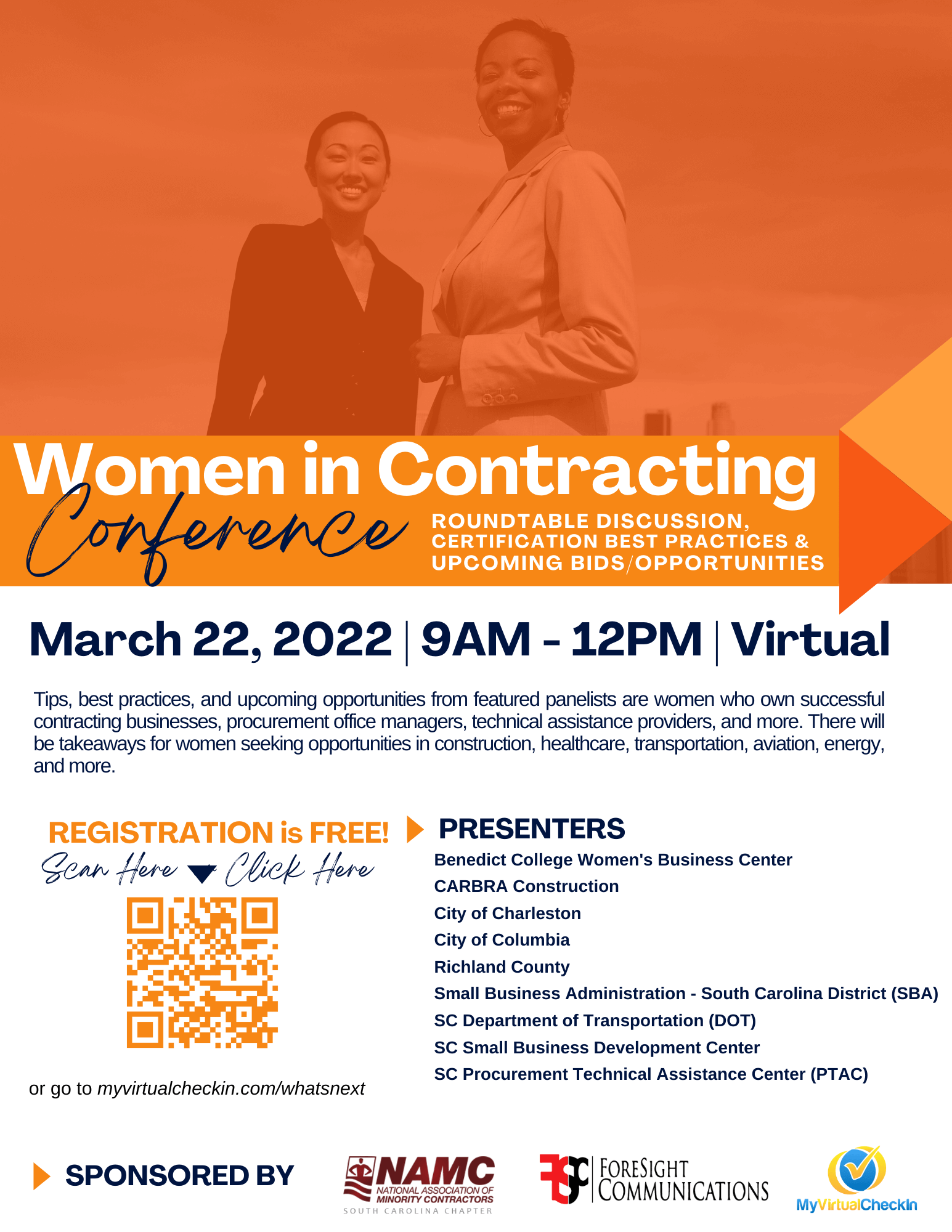 The City of Columbia’s Office of Business Opportunities will be participating in a Women in Contracting Conference on Tuesday, March 22nd beginning at 9:00AM! This virtual conference will provide tips, best practices, and upcoming opportunities from featured panelists who are women who own successful contracting businesses, procurement office managers, technical assistance providers and more! To register for this event, click here to go to the Women in Contracting Conference webpage!