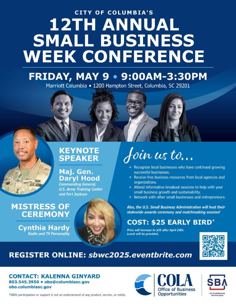 As part of our continuing efforts to promote the exchange of information and resources available to our small business community, the City of Columbia’s annual Small Business Week Conference is designed to recognize the successes of local small businesses, provide businesses with management tools, best practices, and networking opportunities to be successful.